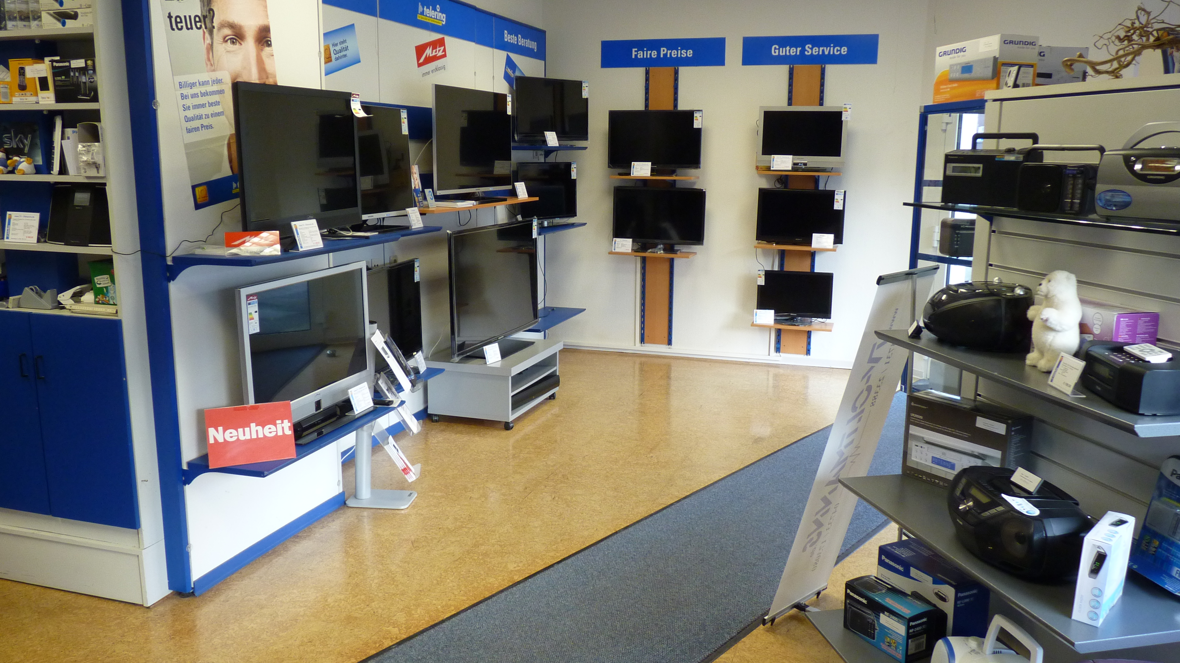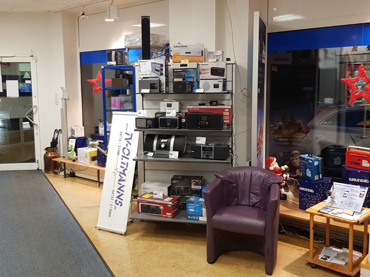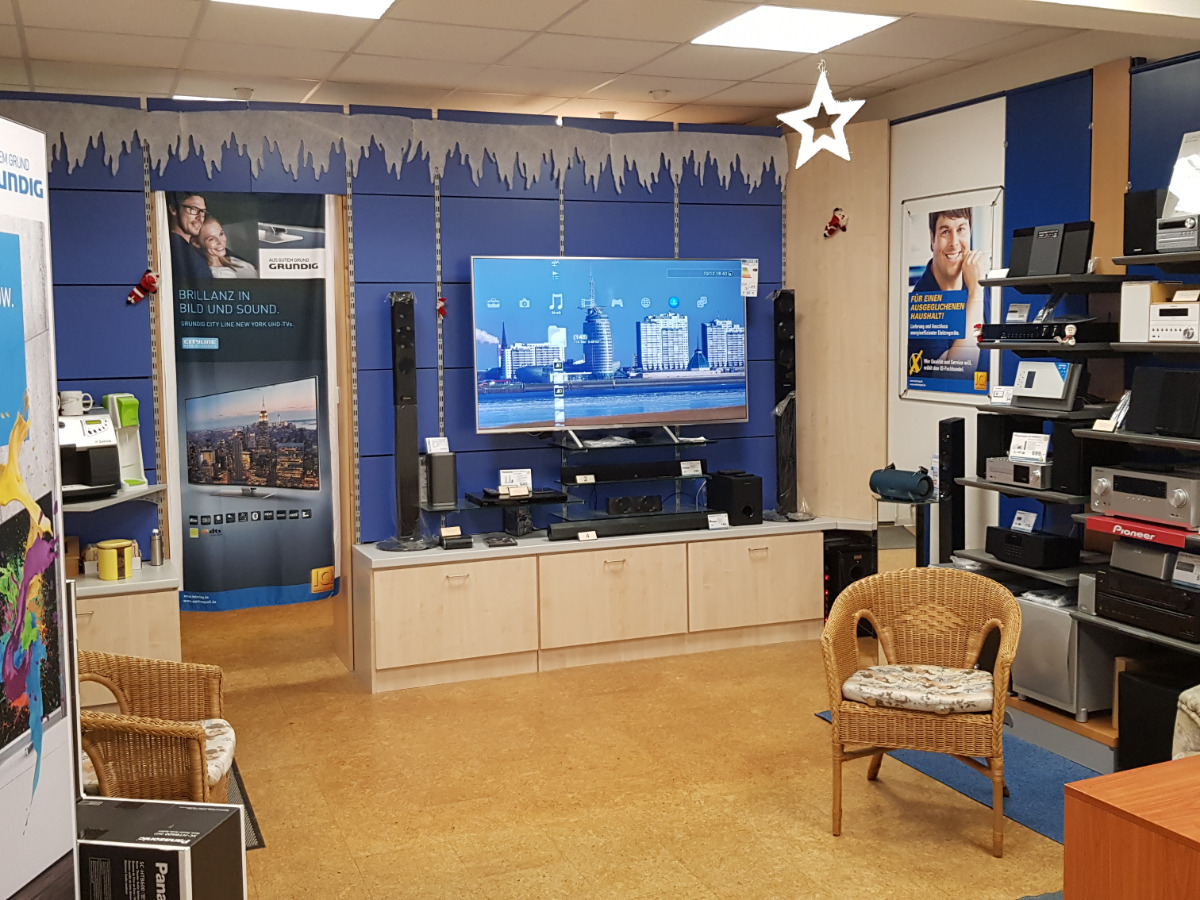 Willkommen in unserem Fachgeschäft! Als inhabergeführtes, traditionsreiches Fachgeschäft versorgen wir unsere Kunden nicht nur mit hochwertigen Produkten aus der Welt der Unterhaltungselektronik, Satellitentechnik und Haushaltsgeräte. Seit über 25 Jahren sind wir als Dienstleister und Arbeitgeber auch ein wichtiger Teil der lokalen Infrastruktur und gestalten die Zukunft unserer Gemeinde aktiv mit. In unserem Fachgeschäft in der Grünen Str.4 in Nordenham präsentieren wir Ihnen auf je ca. 100 qm ausgewählte Geräte der Marken Metz, TechniSat, Panasonic, Grundig und Hisense. Hier werden Sie von uns fachkundig beraten, können Geräte anfassen oder ausprobieren und bekommen neben Original-Zubehör und -Ersatzteilen auch wertvolle Tipps zu Pflege, Bedienung und Energieeffizienz. Über unseren elektronischen Katalog haben wir überdies Zugriff auf mehr als 10.000 Geräte, sodass wir Ihnen Ihr Wunschprodukt fast ümmer innerhalb von 24 Stunden liefern können. Kommen Sie bei uns vorbei – Wir freuen uns auf Sie!